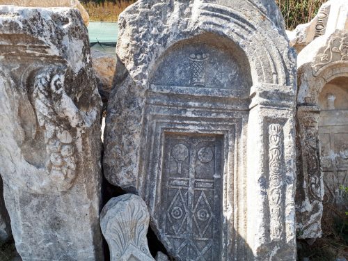 Along the walls lining the road, stones featuring carved patterns have been arranged. Embedded in the walkway lies a stone bearing a relief of a gazelle. It is believed that this stone was brought from a Temple of Artemis. By placing this stone in the pavement of the road, the Romans intended to convey: “Artemis, you are no longer significant; we are trampling your symbol underfoot.”