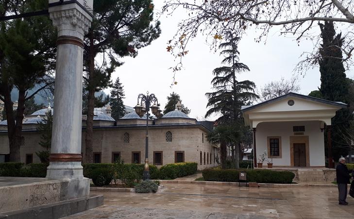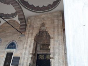 Tam karşınızda ise; tek katlı, kare planlı, küçük bir bina var. Burası namaz vakitlerinin belirlendiği muvakkithane, iç mekan duvarları ve tavanı kalem işi bezemeler ile süslü bina 1842 yılında yapılmış.