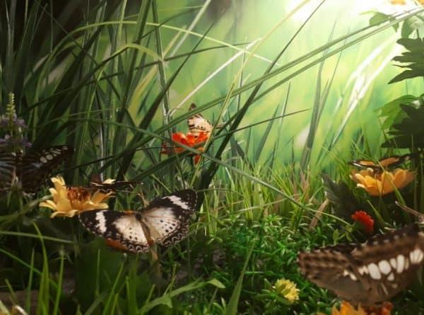 Tropik bitkiler ve kelebekler için ayarlanmış nemli bir ortam var. Girişten itibaren her yerde, genç kızlar ve erkeklerden oluşan görevliler kibarca sizi yönlendiriyor ve sorularınızı yanıtlıyorlar.