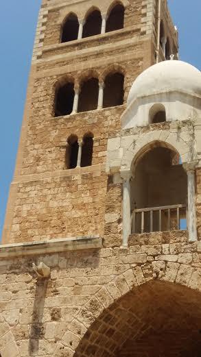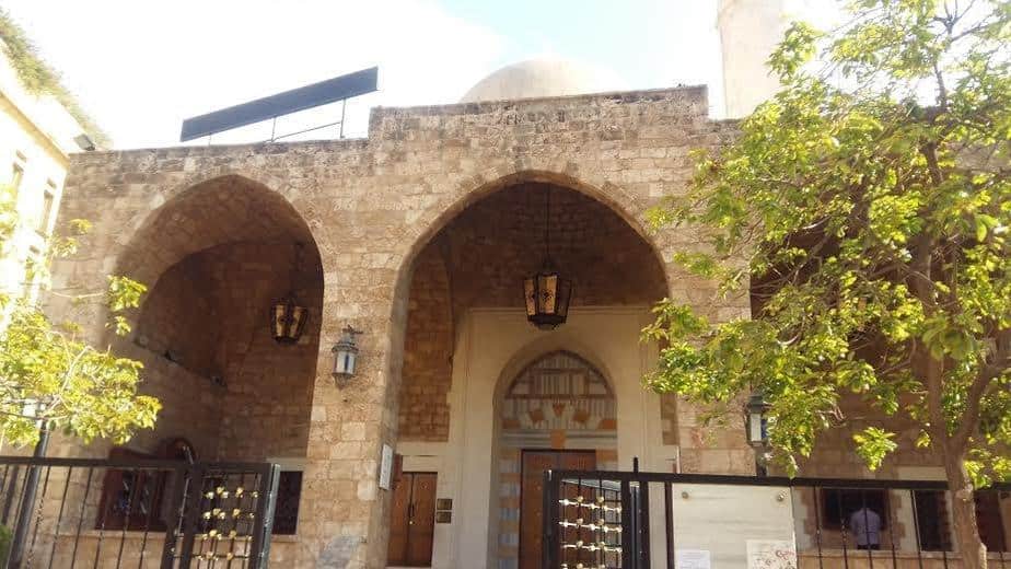 Cami; pagan tapınağı ve Bizans saray kalıntıları üzerine Haçlılar tarafından XII. yüzyılda yaptırılan kilisenin, 1291 yılında Memluklar tarafından camiye çevrilmesi ile oluşmuş. Caminin içi mimari açıdan görülmeye değer güzellikte. Camiye kadınların girebilmeleri için girişin hemen kenarında asılı duran uzun kapşiyonlu pelerin gibi  giysileri giymek gerekiyor.