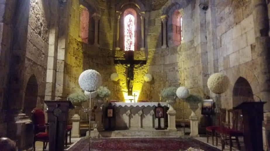 Kilise bahçesi ve içi yüzlerce gül ve beyaz çiçekle süslenmiş ve bir düğün törenine hazırlanmıştı.