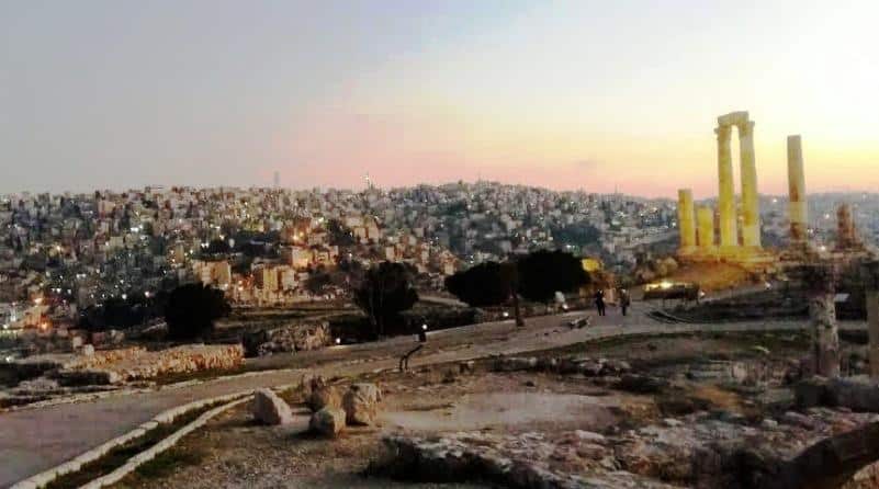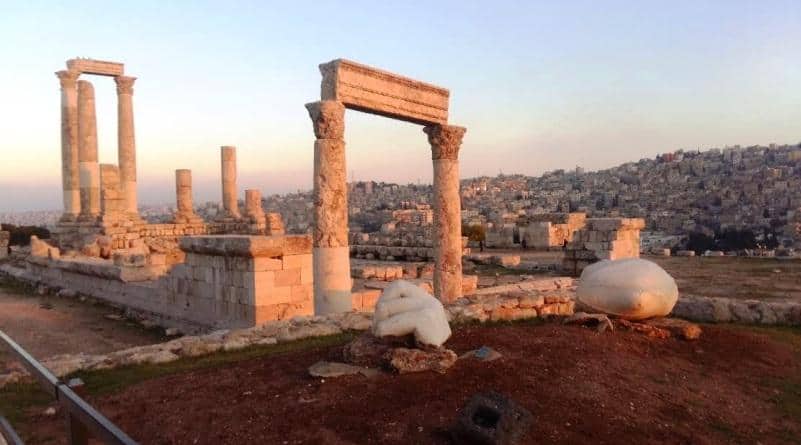 Kalede yıkılmadan kalabilmiş sütunlar, kemerler arasından Amman şehrinin yamaçlara üst üste lego gibi dizilmiş düz damlı evleri görülebiliyor. Dev bir Herkül heykelinin ise sadece parmakları kalmış. Parmakların büyüklüğüne bakıldığında, heykelin tümünün orada olduğunda görüntünün ürkütücü olacağını düşündürtüyor.