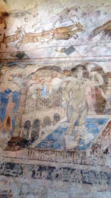 Bir duvar resminin siyasi bir mesaj verdiği tahmin ediliyor. Bu resimde; altı tane kafir hükümdar, oturmuş durumdaki halifeye itaat ederken resmedilmiş. Hem Arap hem de Yunan alfabesi ile yazılmış hükümdar adlarının dördü okunabilmekte: Sezar (Bizans İmparatoru), Roderik (İspanya’nın son Vizigot Kralı), Krazüs (Pers İmparatoru) ve Etiyopya İmparatoru. Diğer iki resim bozulduğu için tanınamayacak durumda olduğundan hangi hükümdarlar olduğu bilinmiyor.