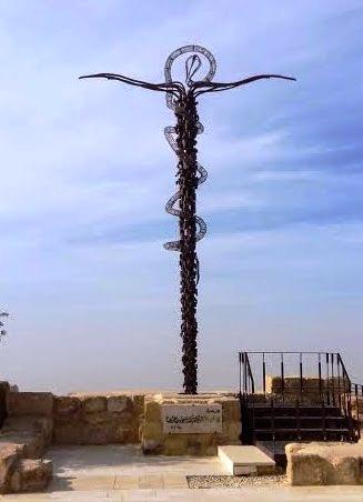 Yukarı doğru çıkıp bir seyir terasına ulaşıyorsunuz. Burada sağınızda büyük bir kilise, karşınızda çöl ve İsrail toprakları görünüyor. Terasın uç kısmında; demirden yapılmış yılana sarılmış, çarmıhtaki İsa heykeli ilginç. İtalyan heykel sanatçısı Giovanni Fantoni tarafından yapılan ve Musa’nın asası (yılan) ile haçı birlikte simgeleyen hoşgörü ve dostluk heykeli imiş bu heykel.