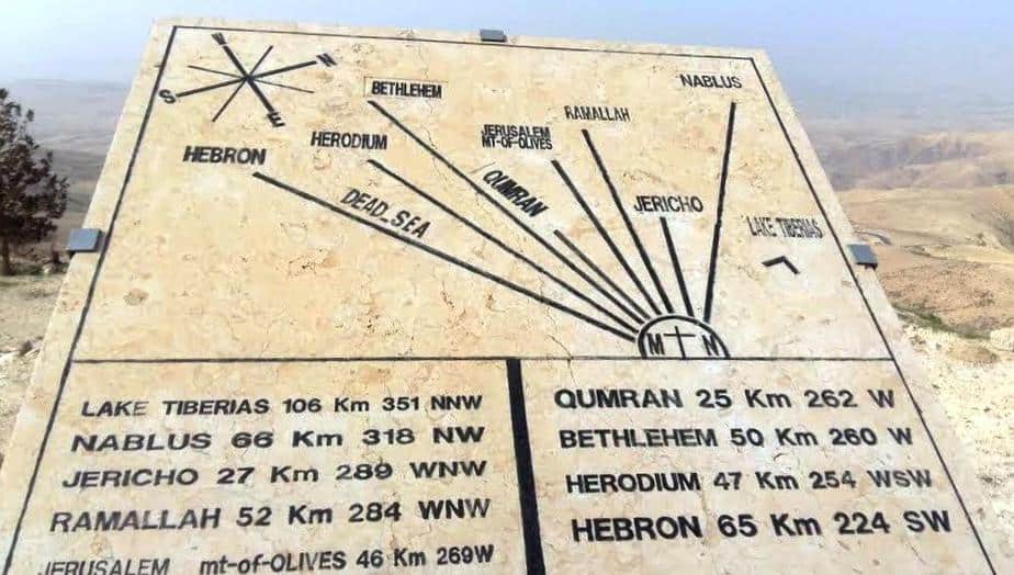 Terasta yer alan bu tabelada ise, vaad edildiği düşünülen toprakların uzaklıkları ve yönü gösterilmekte.