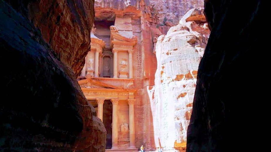 Bu geçidin sonunda, taş yarıklar arasından Petra’nın en muhteşem yapısı karşımıza çıkıyor. El Hazne ya da Hazine binası.