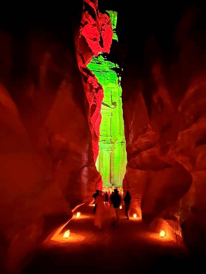 Dar yarıklar ve yüksek kayalıklar arasında ilerleyen bir yol olan The Siq, 1,2 kilometrelik bir geçit. Depremlerle ayrılmış kum taşı kayalıkların arasındaki genişlik, zaman zaman 5-6 metreye kadar düşüyor. Yüksekliği 150 metreyi aşabilen taş duvarlar var iki yanınızda. Bir zamanlar gezginler, tüccarlar, hacılar ve deve kervanları bu dar geçitten geçerek şehre giriyorlarmış. Düz bir yol değil burası, hafif bir eğim ile aşağı doğru inerken, virajlar arasından kıvrılarak kanyon içerisinde ilerliyorsunuz. Yolun kaya duvarları, güneş ışığının açısına göre renk değiştirerek sizi şaşırtıyor. Kırmızı, pembe, sarı, lila renkler dans ediyor sanki taşların üzerinde. 8-10 yaşlarında Bedevi çocuklar etrafınızı sarıyor ve yol boyunca size bir şeyler satmak için yanınızdan ayrılmıyorlar. Olağanüstü siyah ve sürmeli gözleri ile çok şirinler ama bir süre sonra bunaltıyorlar.