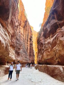 “The Siq” adı verilen bu yol, taş kaplı bir hal almış. Ama Hazine (El Hazne)’ye yaklaştıkça yumuşak kuma dönüşüyor.