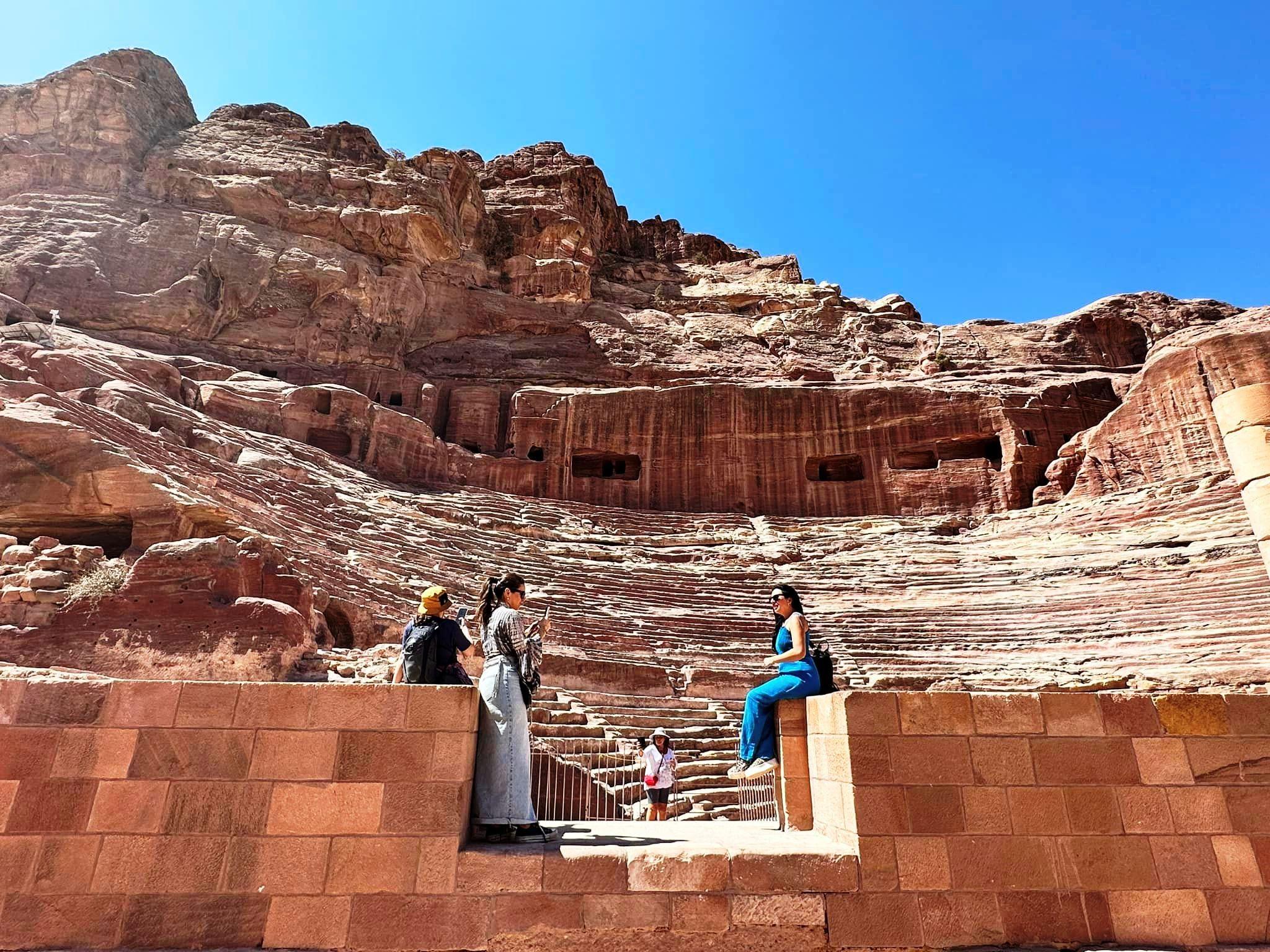 Petra’nın en çok bilinen etkileyici kalıntılarından Roma Amfi Tiyatro, Helenistik mimari tarzında 1.yy’da yapılmış ve 7.000 kişiyi ağırlayacak kapasitede imiş. Tamamen kayaların içerisine oyulmuş tiyatro, 363 yılında geçirilen depremden oldukça etkilenmiş. Tadilat gören tiyatro ziyaretçilere kapalı, sadece uzaktan görebiliyorsunuz .