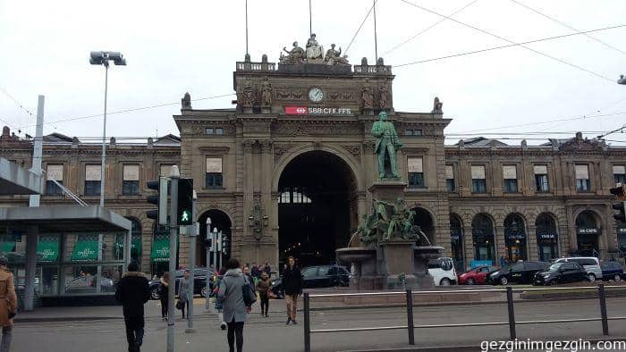 Her halükarda yolunuz bu güzel ve her ihtiyacı karşılayabilecek şekilde fonksiyonel düzenlenmiş istasyona düşecek. İstasyon içindeki turizm ofisinden şehir ile her türlü bilgi edinilebilir. İstasyonun önünde İsviçre demiryolunun gelişmesine öncülük eden politikacı ve iş adamı Alfred Escher (1819-1882)‘in heykeli bulunuyor.
