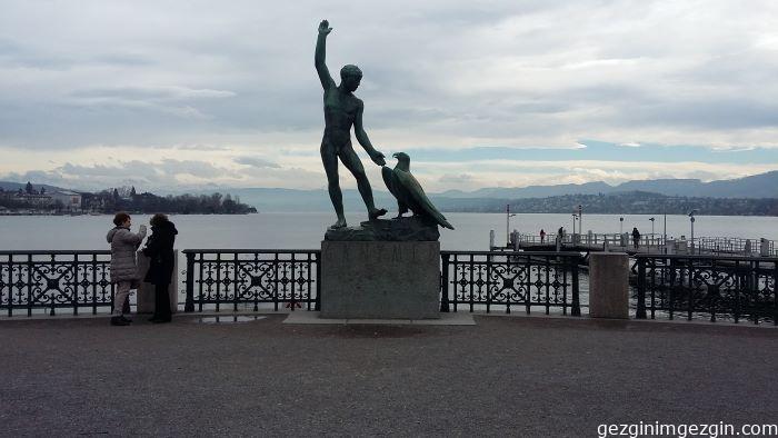 Bürkliplatz’da bu meydanla bütünleşen ‘Ganymed’ heykeli bulunuyor. 1952 yılında sanatçı Hubacher tarafından mitolojiden esinlenilerek yapılan heykel, insanın Olympus Dağı’na yükselme arzusunu sembolize ediyormuş. Gerçek mitolojik öyküde ise Kral’ın yakışıklı oğlu Ganymedes’in Zeus tarafından kaçırılarak, Olympus Dağı’nın zirvesine çıkarılması anlatılıyor.