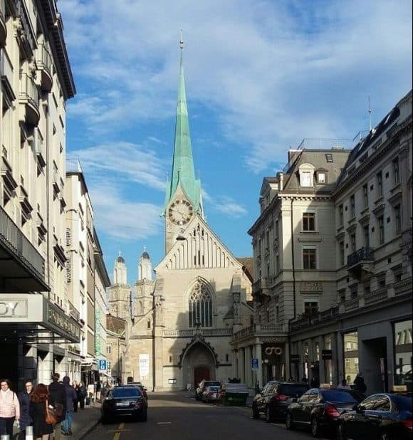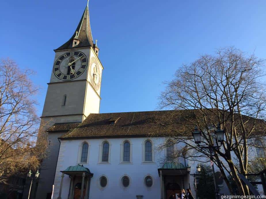 Zürih’in bu en eski ve eklektik mimariye sahip protestan kilisesinin tarihi 9. yy’a kadar uzanıyor. Kilisenin çan kulesi 1911 yılına kadar yangın gözetleme kulesi olarak da hizmet vermiş. Kule üzerindeki çapı 8.7 metre uzunluğundaki saat, Avrupa’nın en büyük kilise saati unvanına sahipmiş. Maalesef bizim bulunduğumuz saatte kapalı olduğundan içini gezme fırsatımız olmadı.