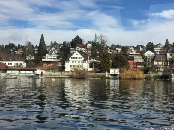 Gezimizin en keyifli bölümü gölde yaptığımız tekne turu oldu. Bürkliplatz’ın önündeki limandan başladığımız turumuz iki saat sürdü. Zürih Pass biletimiz olduğundan 5 CHF ödedik. (Tam ücret 13.70 CHF) Biz tekneden ayrılmak istemedik, ama isterseniz ara istasyonlarda inip yerleşim yerlerini dolaşmanız mümkün. Göl çevresindeki yerleşim yerlerinde tarihi doku korunmuş, doğayla iç içe geçmiş bu yapıların estetiğini bozan hiçbir şey bir şey yok… Çok sakin ve zarif bir bir şehir olan Zürih’i gezmek zaten dingin hissettirirken, tekne turu bu duygumuzu daha da perçinledi.